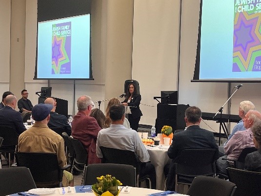 Highlights included powerful video spotlights from two JF&CS clients and a staff member, each sharing personal stories of resilience, care, and impact. Their words brought our mission to life, showing how JF&CS touches individuals and families in profound ways. We were also honoured to welcome Guest Speaker Brian Prosserman, whose inspiring remarks encouraged reflection on the power of JF&CS’s unique support and the importance of standing together in challenging times.