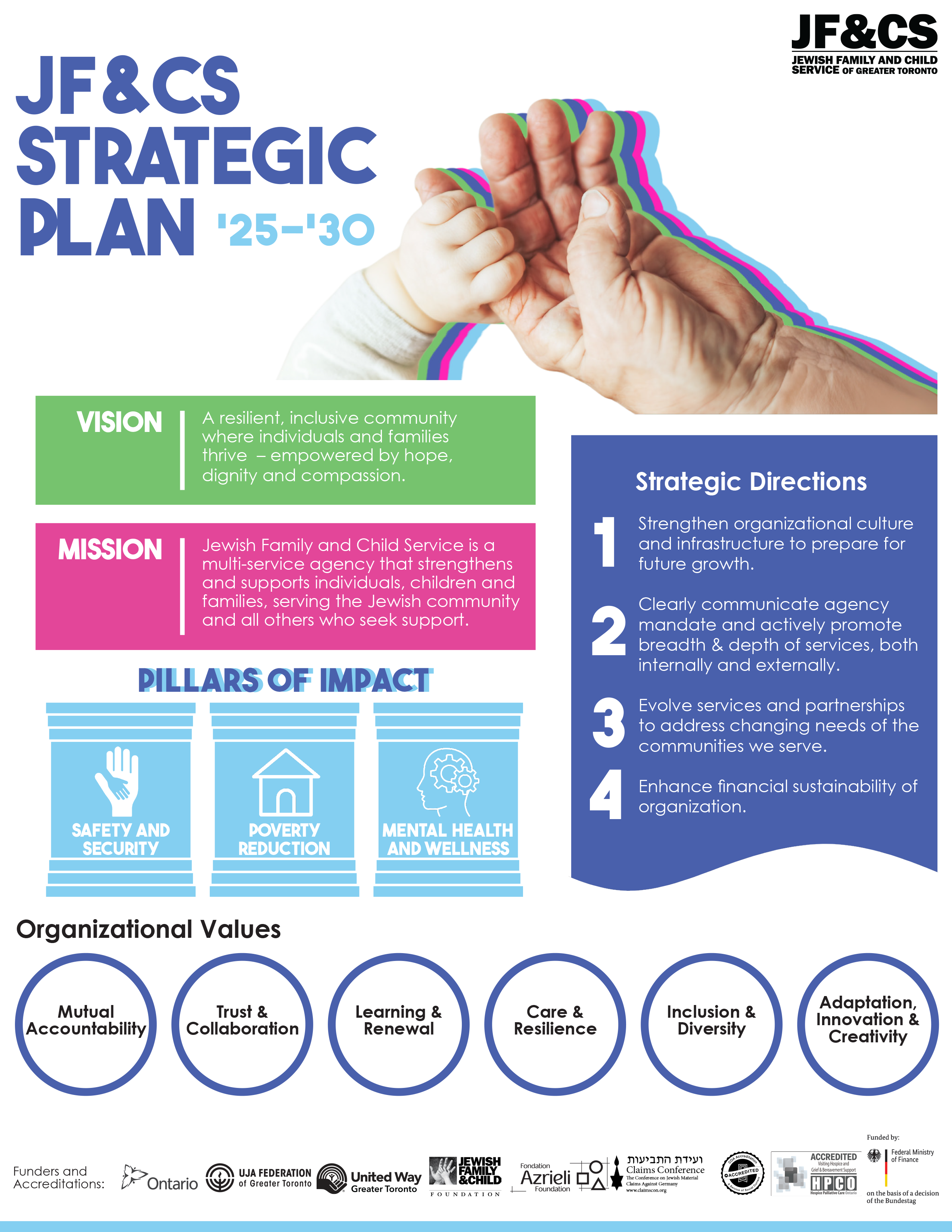 Jewish Family and Child Service launched a new Strategic Plan this month, guiding our operations for the next five years. This roadmap ensures that as the world changes, we remain responsive, sustainable, and deeply rooted in our mission to strengthen and support individuals, children and families. We serve the Jewish community and all others who seek support.